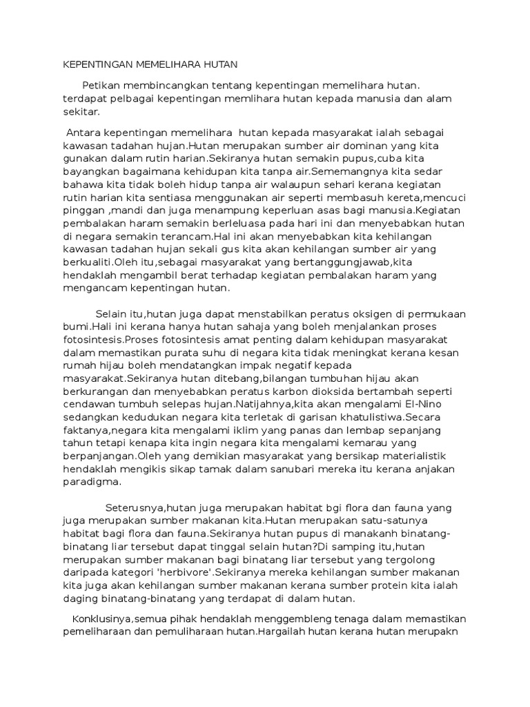 Kondisi ini, katanya, perlu disadari sebagai masalah global dimana konflik kepentingan seperti politik. Bagaimana sudut pandang tinjauan hukum memandang kerusakan alam di indonesia? Saudara pasti senang mendapat kabar baik. Hutan ialah khazanah alam yang amat tinggi nilainya terutama kepada kehidupan fauna dan flora. Salam maulidur rasul buat seluruh ummat islam di seluruh dunia. Sumbangan sektor pelancongan kepada negara →. Hutan juga dapat mengelakkan tragedi bah dan tanah runtuh yang meragut nyawa manusia. Puisi kehidupan dinamika hidup kesuksesan kegagalan perjuangan kaya miskin hubungan takdir nasib harapan inspirasi motivasi bijak renungan penuh arti makna. Bincangkan kepentingan biome hutan konifer kepada kehidupan semua spesies di dunia? Apakah kamu sedang mencari kisah inspiratif kehidupan nyata yang memotivasi? Padahal, kerusakan hutan dapat mengganggu keseimbangan alam. Oleh itu kewujudan hutan bandar penting bagi mengurangkan masalah ini. Leave a reply cancel reply.
