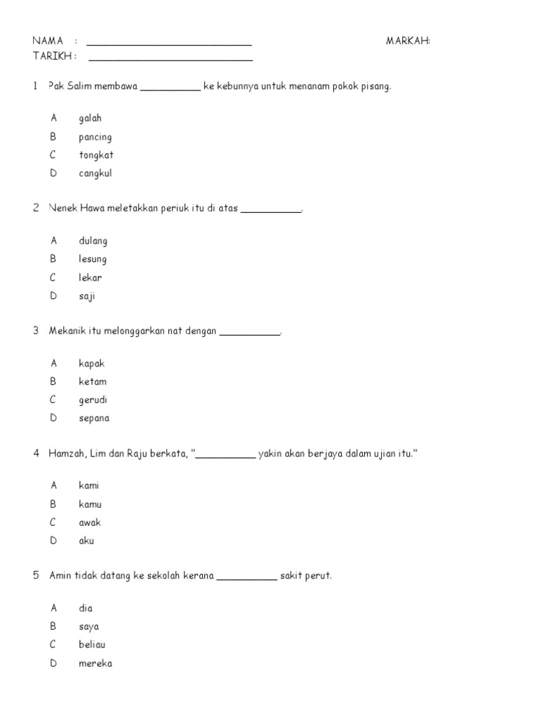 Garis panduan ujian lisan bahasa melayu. Tatabahasa tahun 1 kata nama am. 1.sultan pahang akan merasmikan bangunan baru itu. Ini dibuat sebagai panutan secara tertulis dan tidak tertulis oleh anggotanya. Latihan imbuhan untuk tahun 1 2 3 free download pdf mykssr com pdf download free download pdf. Kelulusan spm dengan cemerlang dalam subjek bahasa melayu, bahasa inggeris, fizik dan matematik merupakan salah satu _ permohonan juruterbang kadet pelatih. Unduh latihan dan latihan tata bahasa inggris smartcat 5.1 mod gratis untuk ponsel android, ponsel cerdas. Kata bantu modul latih tubi tatabahasa Modul latihan spm kelas 5 geo & 5 seni spm bahasa melayu tatabahasa. Tata bahasa yang dalam bahasa inggris disebut grammar sangat penting sebagai modal awal yang harus dikuasai oleh seorang penutur bahasa. Apakah anda belajar bahasa inggris, mempersiapkan ujian, atau hanya ingin mengasah kemampuan tata bahasa anda? Terdapat beberapa kuiz tatabahasa ini yang mengandungi jawapan dan skor. Sekolah kebangsaan st dominic itutelah banyak melahirkan…
